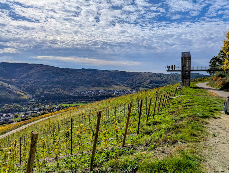 Erreichen kannst du den Skywalk auf zwei Wegen: Entweder du steigst von Kues aus über zahlreiche Weinbergstreppen hinauf – das ist kurz, aber recht steil. Oder du nimmst die gemütlichere Variante: eine Rundwanderung vom Kurgastzentrum aus.