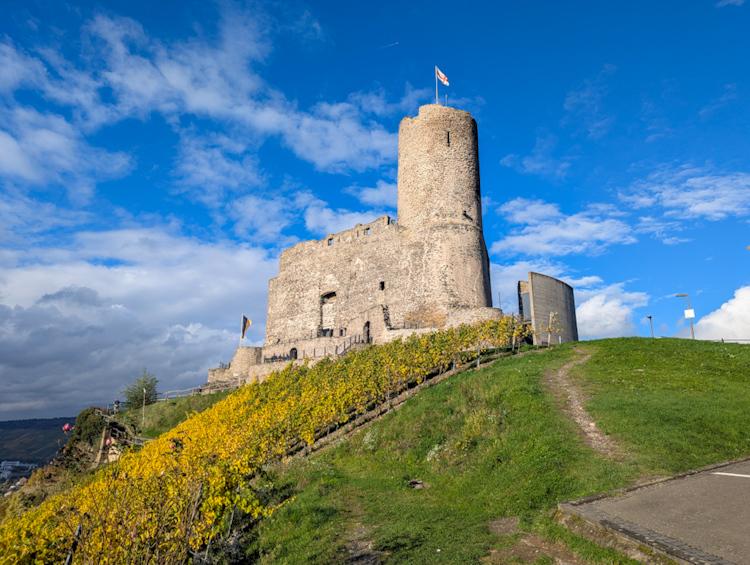 Das Schloss wurde Ende des 19. Jahrhunderts im neogotischen Stil erbaut und gehört heute zu den schönsten Schlossanlagen entlang der Mosel. Heute ist es ein luxuriöses Hotel mit Restaurant und Bar – und auch als Tagesgast kannst du den Innenhof und das imposante Gebäude von außen bewundern. Ein kurzer Abstecher lohnt sich also, selbst wenn du kein Hotelgast bist.