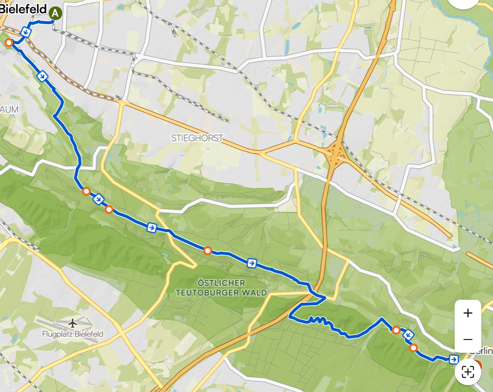 Mein Tipp: Komm einen Tag früher an. Du gewinnst Zeit zum Ankommen, kannst Bielefeld erkunden – und startest am nächsten Morgen ausgeruht in die Etappe.