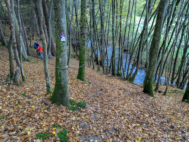 – In der Hölzbachklamm sind die Pfade schmal, steil und bei Regen stark rutschig. Teilweise helfen Seilversicherungen beim Queren der felsigen Passagen.