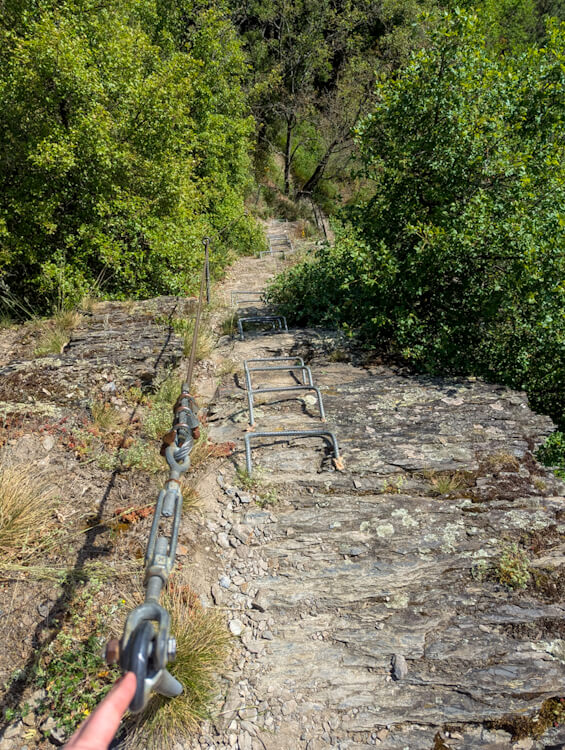 - Ausrüstung: Der Weg ist gut gesichert (Trittklammern, Stahlseile, Leitern), doch trittsichere Schuhe und ggf. Handschuhe sind empfehlenswert. Ungeübte sollten ein Klettersteigset mitnehmen.