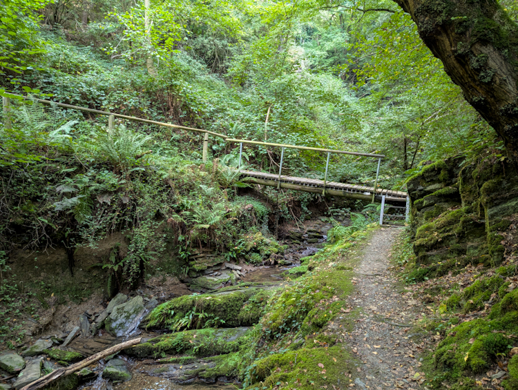 Nach dem Aussichtspunkt Ziehlay beginnt ein abwechslungsreicher Abschnitt, der einmal mehr zeigt, warum diese Strecke als die schönste Etappe am Rheinburgenweg gilt. Der Weg führt zunächst hinab ins Bachtal des Weilerbachs. Unterwegs passierst du den Abzweig nach Weiler – ein möglicher Umweg, wenn du eine Einkehr einplanen möchtest.